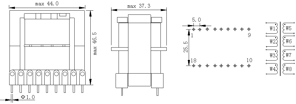 ● Inductance tolerance ±5% at gapped core,±30% at ungapped core