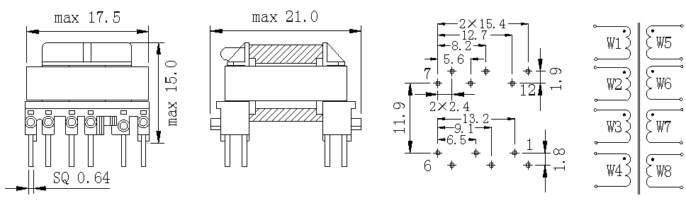 ● Inductance tolerance ±5% at gapped core,±30% at ungapped core