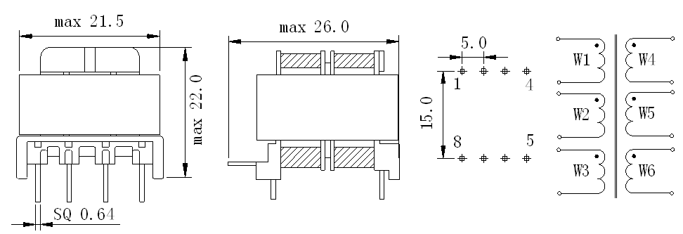 ● Inductance tolerance ±5% at gapped core,±30% at ungapped core