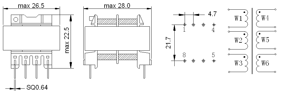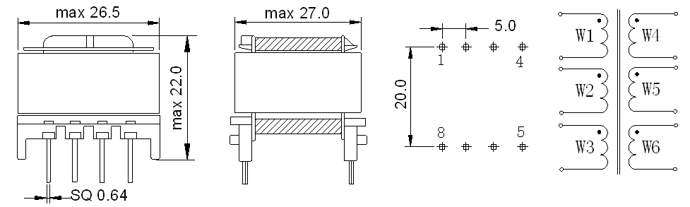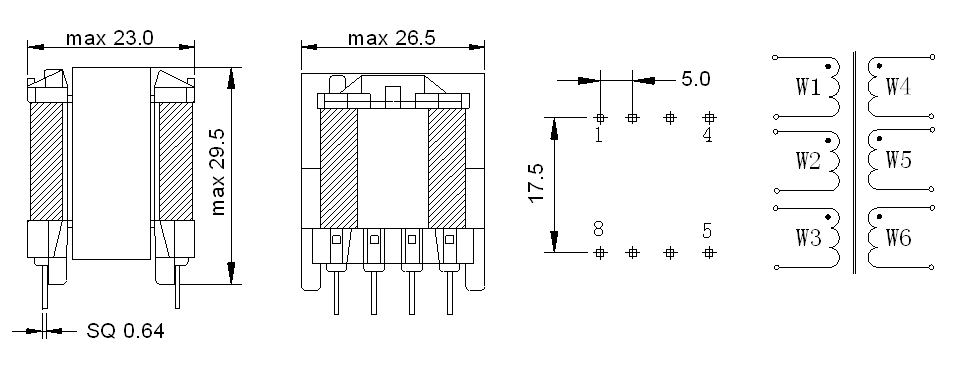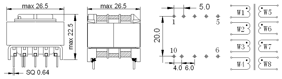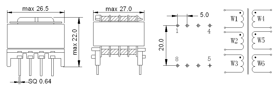 ● Inductance tolerance ±5% at gapped core,±30% at ungapped core