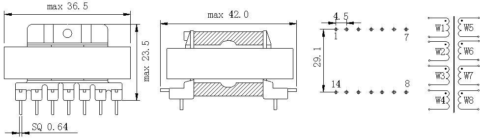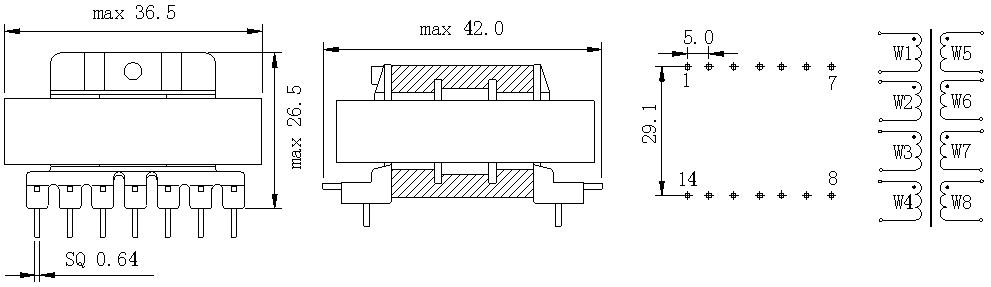 ● Inductance tolerance ±5% at gapped core,±30% at ungapped core